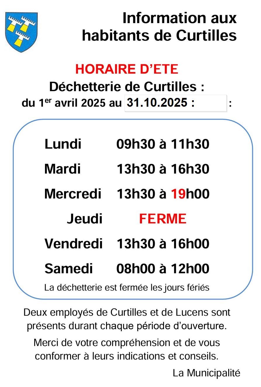 Depuis le 1er mai 2024, les habitants de Lucens utilisent également la déchetterie de Curtilles :